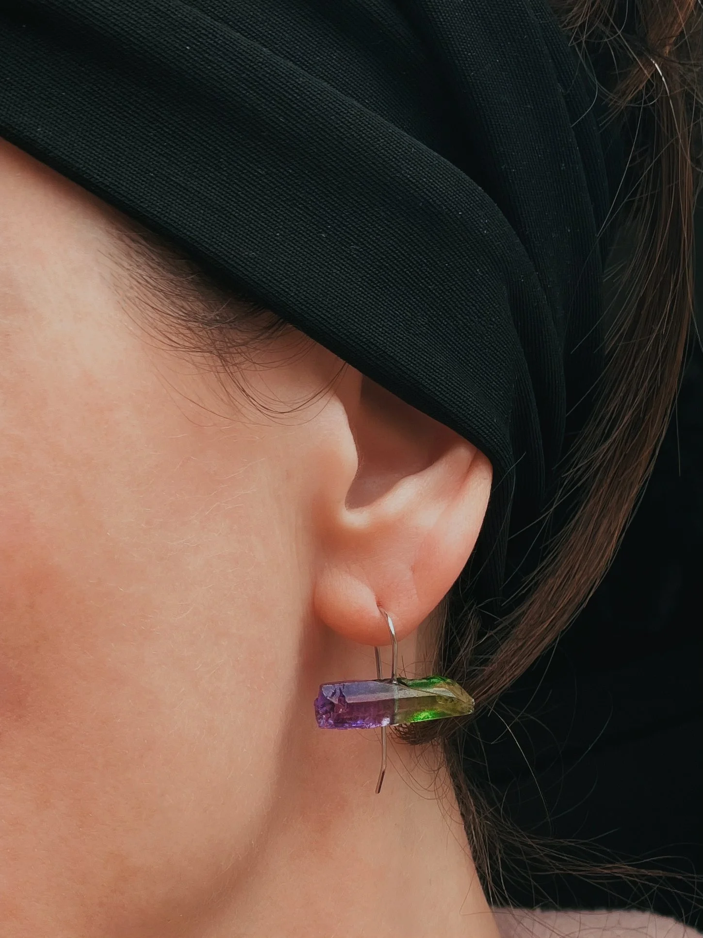 EARRINGS › Image 1 of 4 Image 2 of 4 Image 3 of 4 Image 4 of 4 $40.00 Stainless steel earrings with rough cut tourmaline. Add To Cart Added! Stainless steel earrings with rough cut tourmaline.