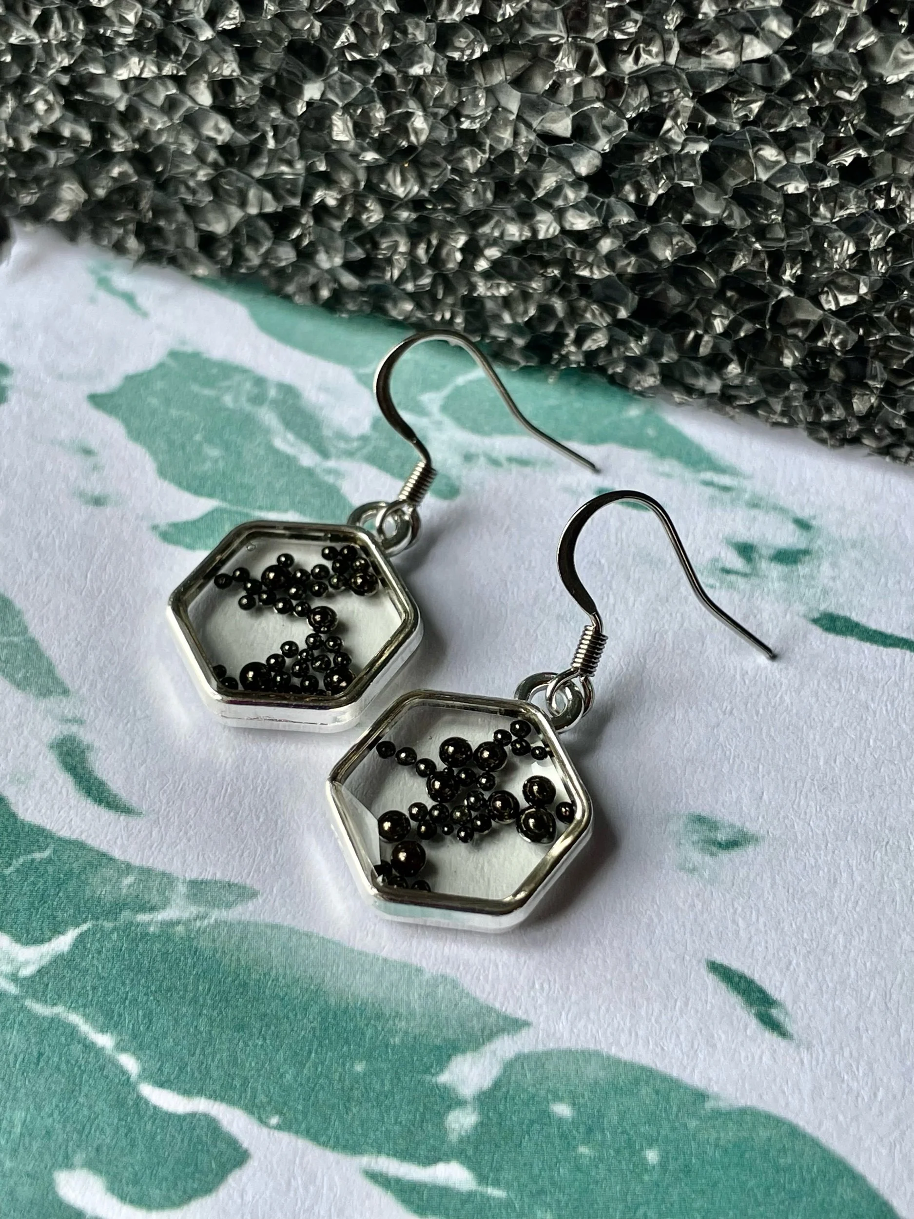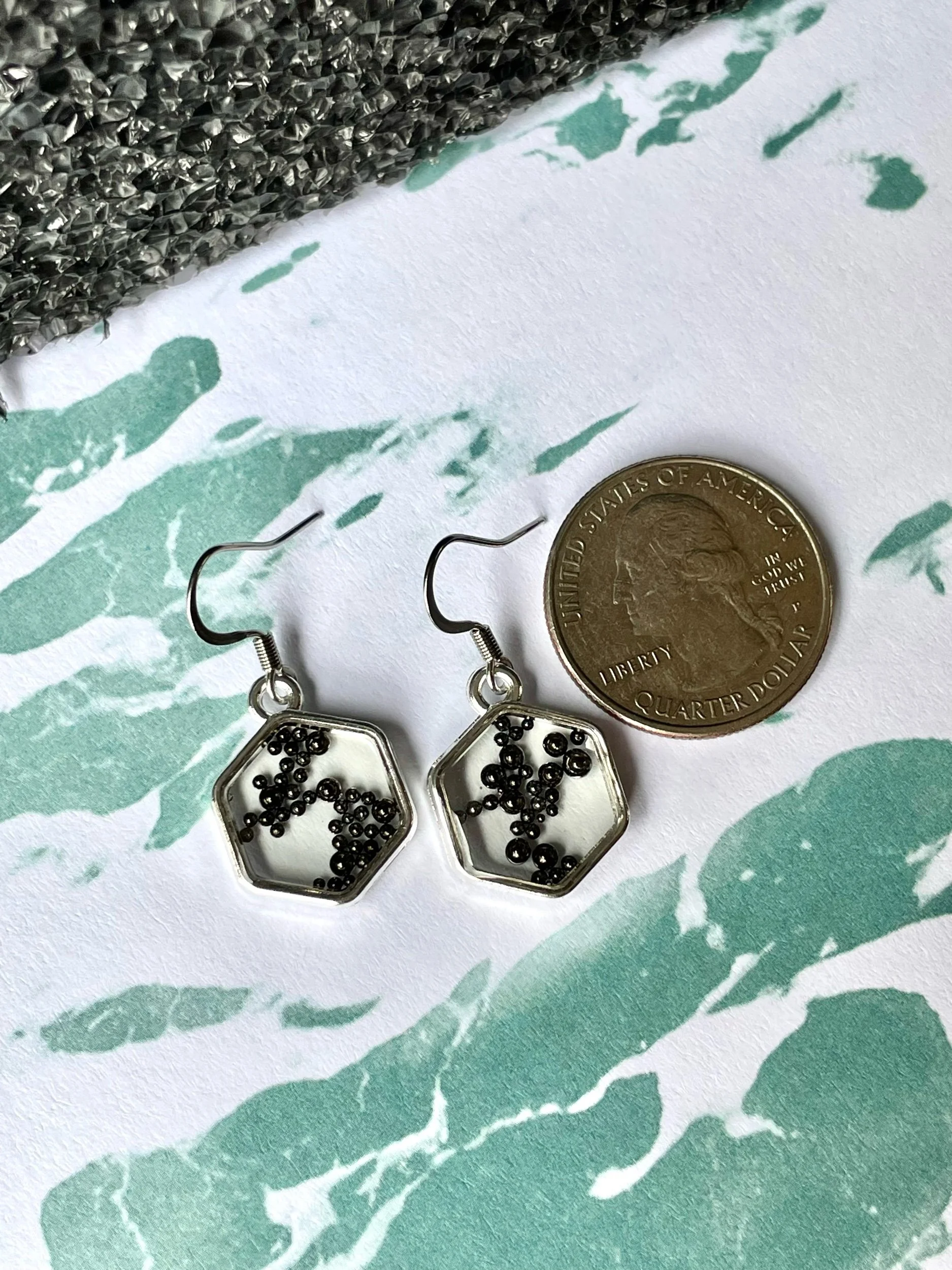 EARRINGS › Image 1 of 2 Image 2 of 2 $33.00 Caviar inspired silver plated mixed media earrings with micro mini metallic balls. Add To Cart Added! Caviar inspired silver plated mixed media earrings with micro mini metallic balls.