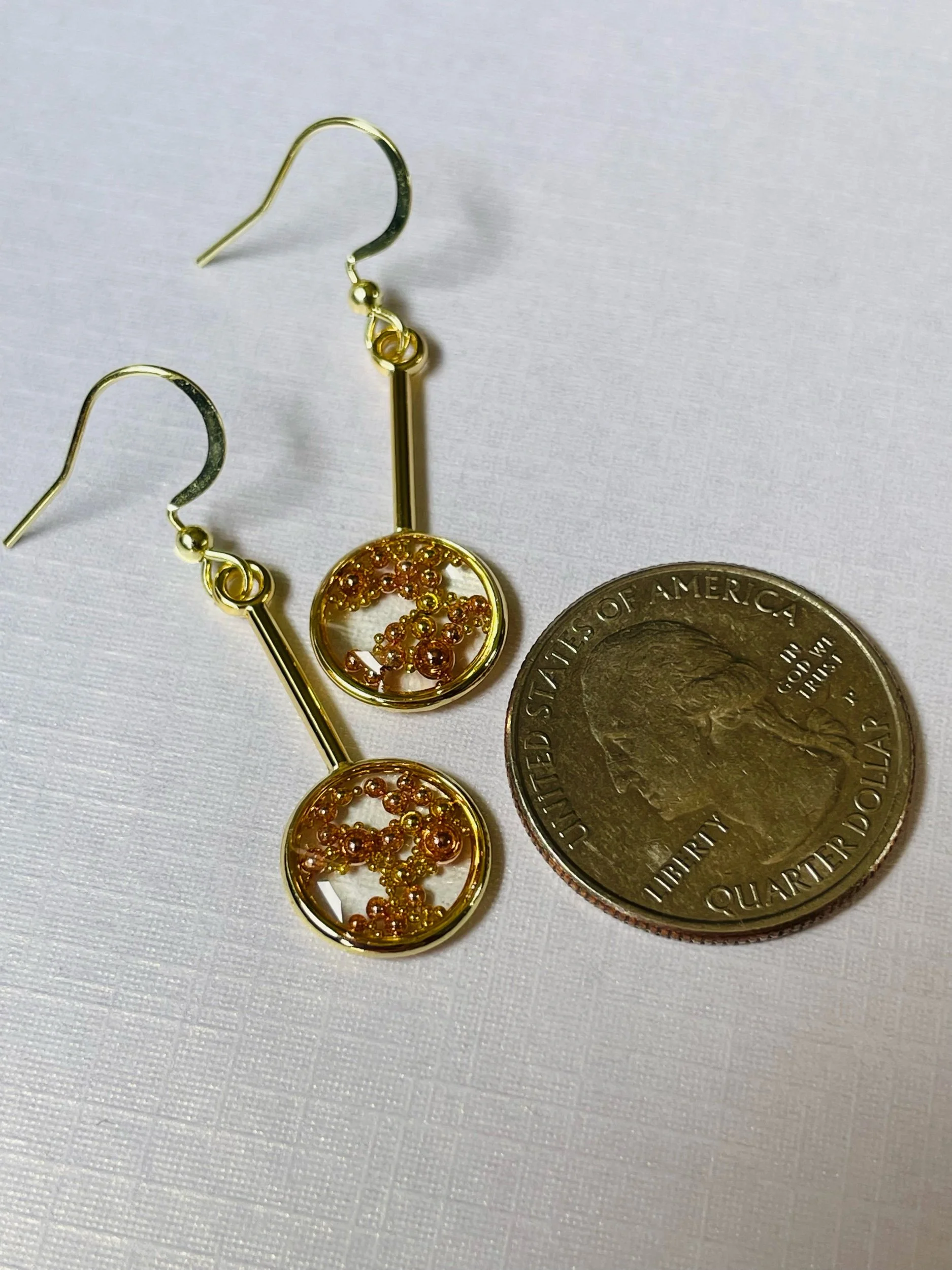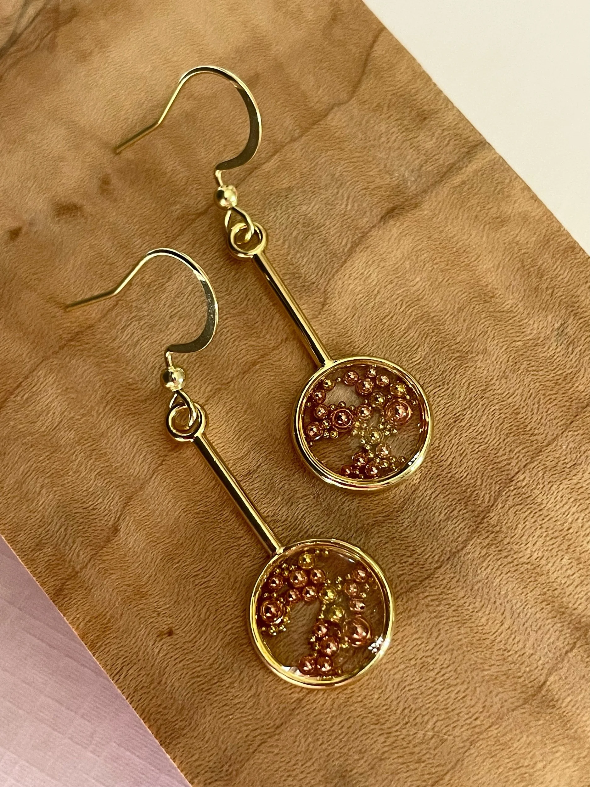EARRINGS › Image 1 of 2 Image 2 of 2 $33.00 Gold plated mixed media earrings with micro mini metallic balls encapsulated in eco-friendly resin. Add To Cart Added! Gold plated mixed media earrings with micro mini metallic balls encapsulated in eco-friendly resin.